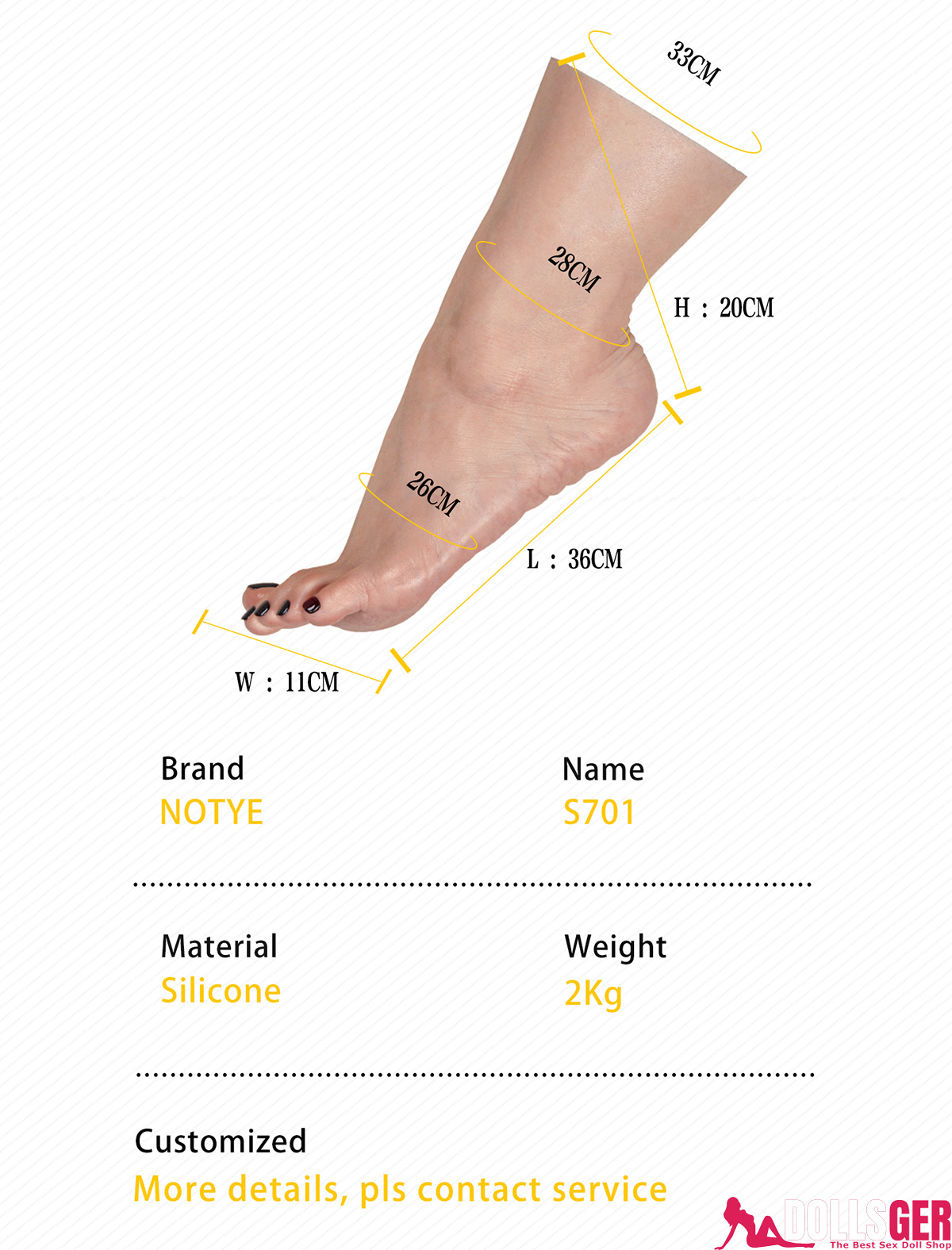Der Fußmodell-Torso ist ein hochspezialisiertes Sexpuppenprodukt. Er konzentriert sich auf die akribische Nachbildung des weiblichen Fußes, eliminiert „Ablenkungen” durch andere Körperteile und konzentriert alle handwerklichen und gestalterischen Anstrengungen auf die Formgebung der ästhetischen Schönheit des Fußes. Darüber hinaus ist der Fußmodell Sextorso deutlich leichter – wie dieses Produkt, das nur 2 kg wiegt – und lässt sich daher leichter transportieren, verwenden und reinigen. Dank seiner kompakten Abmessungen lässt er sich mühelos verstauen; eine abschließbare Aufbewahrungsbox, ein Koffer oder eine Schrankecke reichen aus, um ihn diskret zu verstecken und so die Privatsphäre des Benutzers zu schützen.